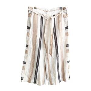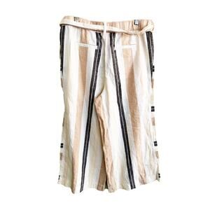 By Anthropologie Colette Pants Tan Striped Belted Elastic Waist Wide Leg Size S