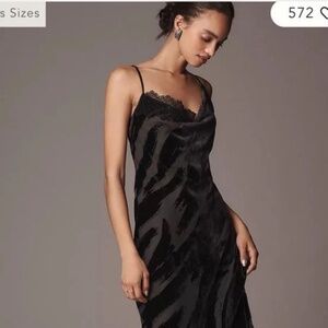By Anthropologie Cowl-Neck Slip Dress Black Motif Midi M
