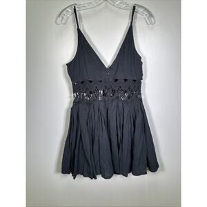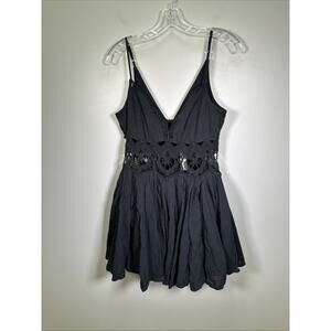 By Anthropologie Crochet Lace Mini Dress XS Black Whimsigoth Flowy V Neck