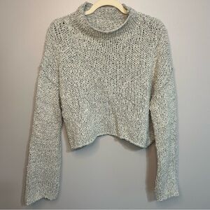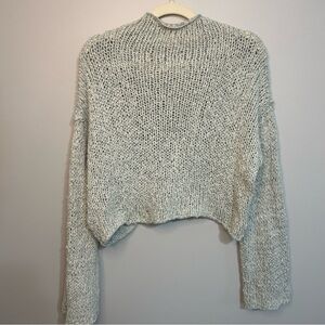By Anthropologie Cropped Blue Chunky Knit Mock Neck Sweater Women’s Size Small