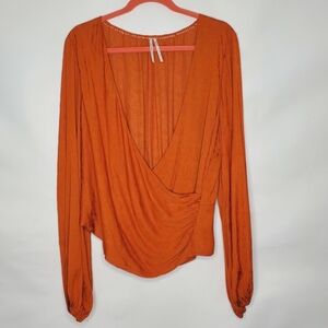 By Anthropologie Crossover Top Size XL Rust Long Sleeve Smocked Waist Blouse