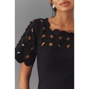 By Anthropologie Cutwork Mini Shift Dress Size 12 in Black