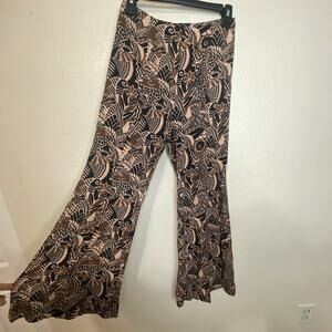 By Anthropologie Drapey Flare Pants in Brown Motif Boho Hippie Bell Bottoms Size 0 NWT