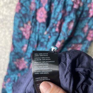 Color/Pattern: Navy/blue base with teal and pink floral print