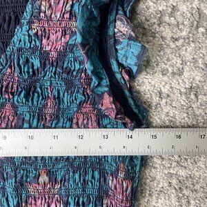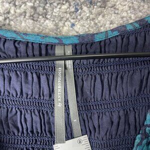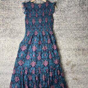 By Anthropologie Dress Womens Small Blue Teal Floral Smocked Flutter Maxi Lined