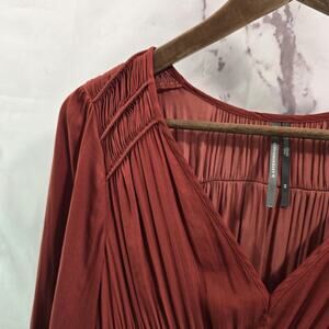 By Anthropologie Dress Womens XS Terracotta Satin Midi Maxi Grecian Rust Tiered