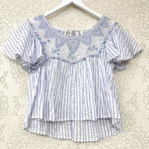 By Anthropologie Embroidered Flutter-Sleeve Top