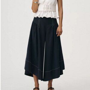 By Anthropologie Extended Waist Pants Linen Navy Blue Wide Leg Crops sz 14 NWT