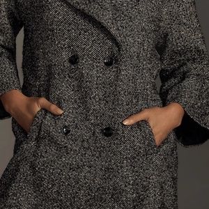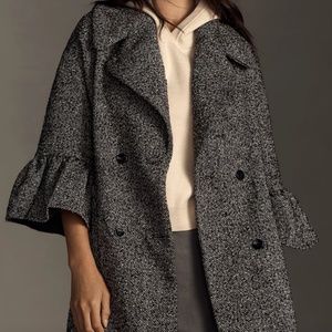 NWT, NEVER WORN, By Anthropologie Femme Peacoat XXS, Oversized Black and White Peacoat, Style No. 4133370060002; Color Code: 018, Polyester, wool, acrylic, nylon, Slant pockets, Button front, Dry clean