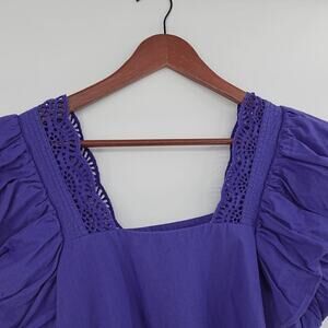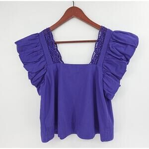 By Anthropologie Flutter Sleeve Blouse XS Purple Lace Cropped