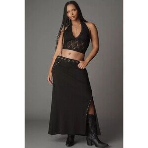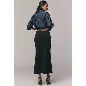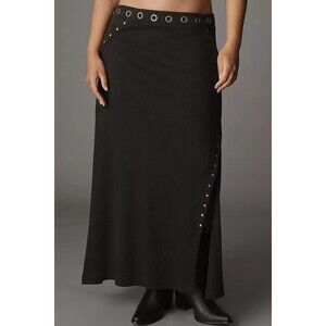 By Anthropologie Hardware Side-Slit Column Midi Skirt Studded Black MP 284204