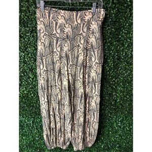 By Anthropologie Harem Pants SZ Small Beige Teal Paisley Boho Button Zip Festival