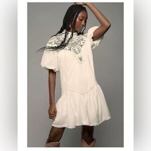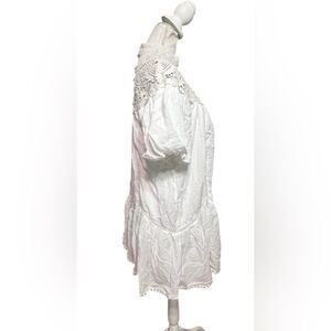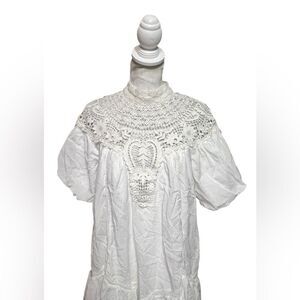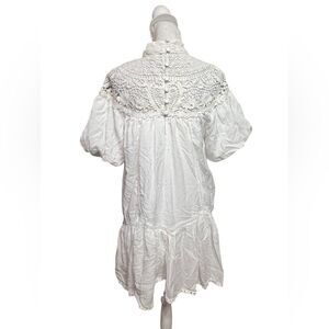 By Anthropologie High-Neck Lace Tunic Mini Dress White Size Medium NwOT