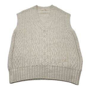 By Anthropologie | Ivory Oversized Preppy Cable Knit Sweater Vest XXS