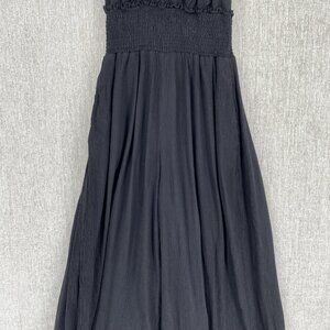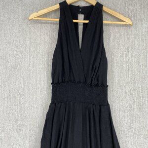 By Anthropologie Jumpsuit Womens XS Black Wide Leg Smocked Halter Keyhole V-Neck