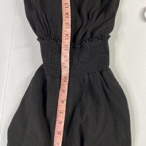 By Anthropologie Jumpsuit Womens XS Black Wide Leg Smocked Halter Keyhole V-Neck
