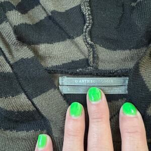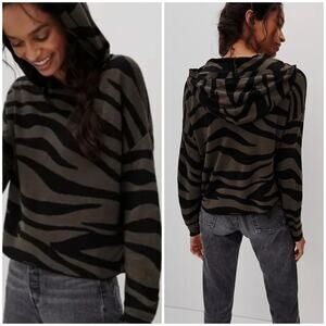 By Anthropologie Kasia Knit Hooded Pullover Olive Green Black Zebra