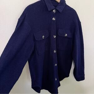 By Anthropologie Knit Button Up Shacket JackeNavy Blue Size Womens Size M