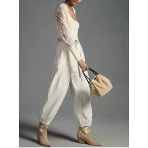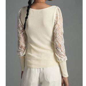 By Anthropologie Lace-Sleeve Sweater in the color "Ivory", size women's large.