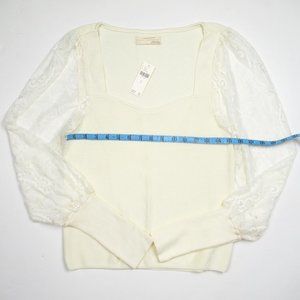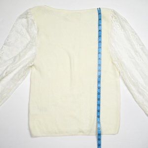 By Anthropologie Lace-Sleeve Sweater Blouse Ivory Cream White - Large