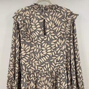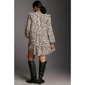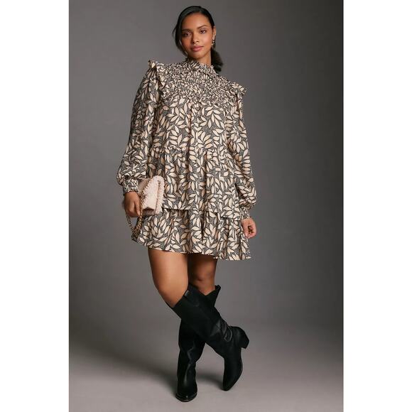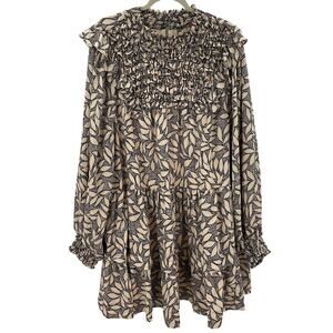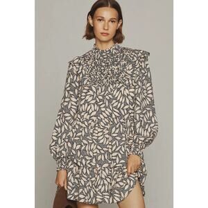 By Anthropologie Long Sleeve Printed Smocked Mini Dress 3X