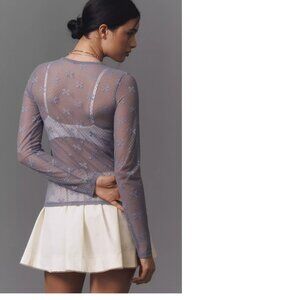 By Anthropologie Long-Sleeve Novelty Lace Top new nwt slate color size S