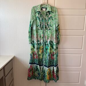 By Anthropologie Long-Sleeve Printed Maxi Shirt Dress