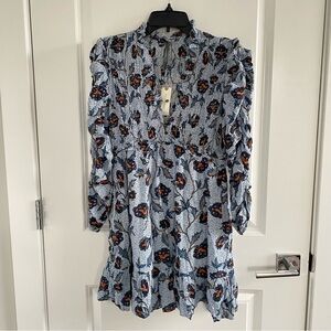 By Anthropologie Long-Sleeve V-Neck Ruffle Mini Dress