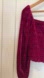 This velvet peasant blouse is a stunning rich magenta pink with a smocked elastic scrunch bodice, ruffles hem, and puff long sleeves with an elastic wrist. Deep square neckline.