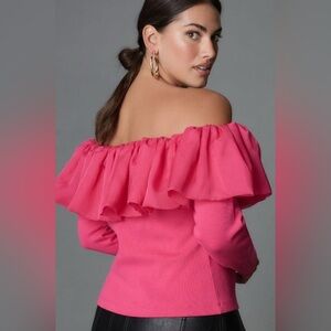 By Anthropologie Off-The-Shoulder Organza Ruffle Top Small Pink