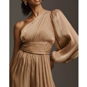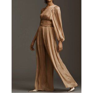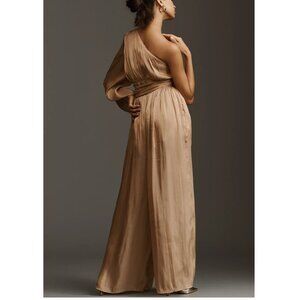 By Anthropologie One-Shoulder Metallic Jumpsuit Gold Size 4