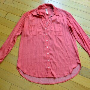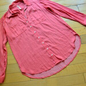 By Anthropologie Orange Pink Long Sleeve Button Down Shirt Size XS