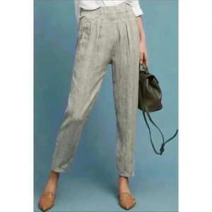 By Anthropologie Pants Womens Large Green Stripe 100% Linen Pull On Ankle. Excellent pre-owned condition with no flaws found. Measurements in photos. Fast shipping!