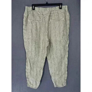 By Anthropologie Pants Womens Large Green Stripe 100% Linen Pull On Ankle Crop