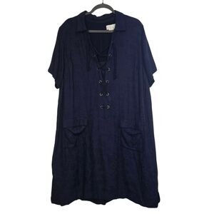 By Anthropologie Plus Size Finley Lace Up Linen Blend Shirt Dress in Blue.