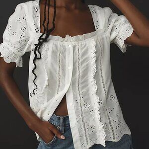 By Anthropologie Puff-Sleeve Eyelet Top *NWOT*