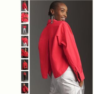 By Anthropologie Red Back-Slit Buttondown Shirt
