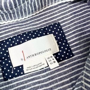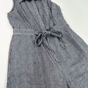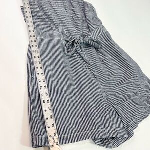 By Anthropologie Romper Womens 6 Blue Striped Linen Seersucker Front Tie Preppy