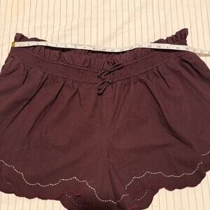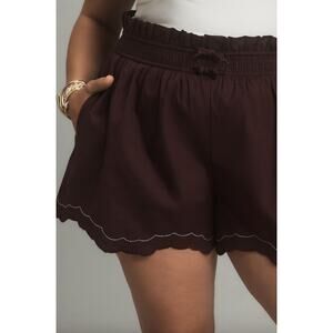 By Anthropologie Scallop-Hem Shorts drawstring maroon-ish brown 1X