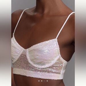 By Anthropologie Sequin Mesh Crop Top