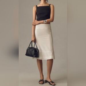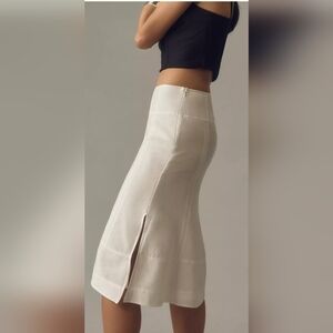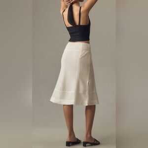 By Anthropologie Sheer Seamed Fluted Midi Skirt, Cotton Silk Blend, White