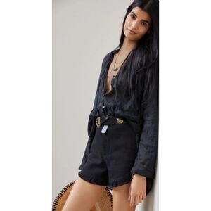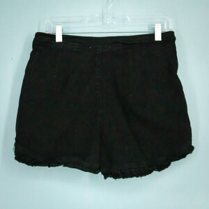 By Anthropologie Size 8 Black Ruffled High Rise Button Zip Denim Jean Shorts