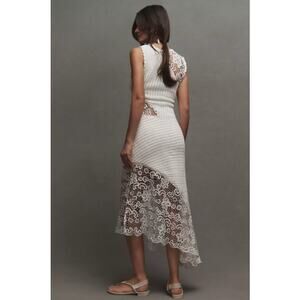 By Anthropologie Sleeveless Lace Mix Sweater Midi Dress in Ivory Size M $498