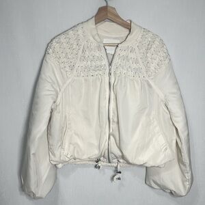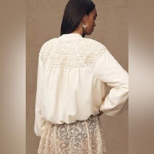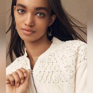By Anthropologie Smocked Bomber Jacket - small