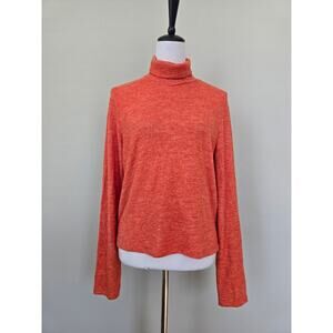 By Anthropologie Soft Knit Turtleneck XL Orange Rust Crop Fall Cozy Vibes