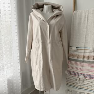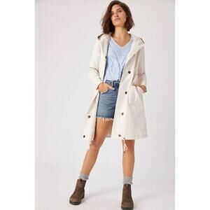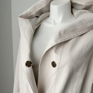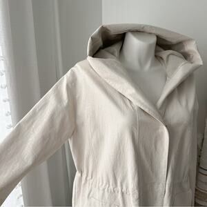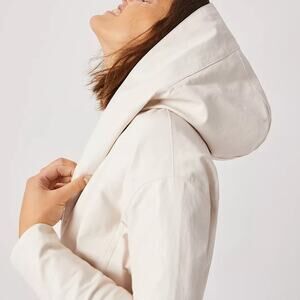 By Anthropologie Stevie Ivory Faux Leather Hooded Snap Front Utility Jacket L