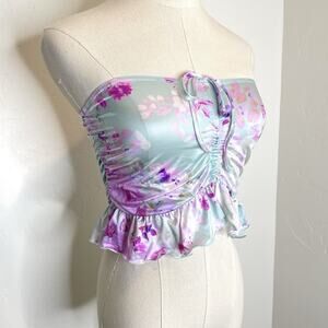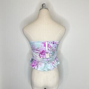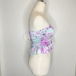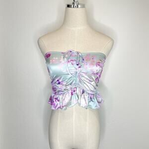 New with tags By Anthropologie Strapless Ruffled Bandeau Top Womens Small Satin Blue Pink