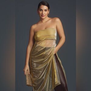 By Anthropologie Strapless Sheer Metallic Tunic Top NWT Size M