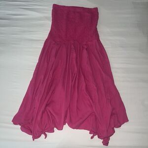 By Anthropologie Strapless Smocked Cover-Up Dress Pink Rose Large Fairy Hem