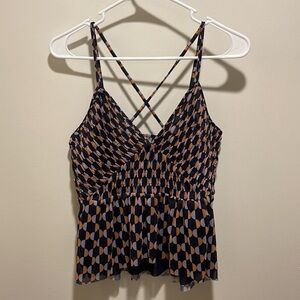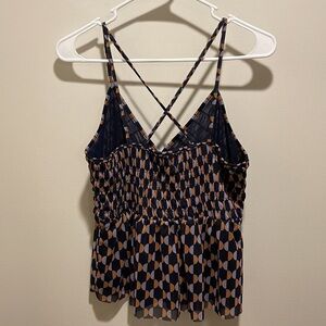 By Anthropologie Strappy Tank Ruched Mesh Detail Small Top Ruffle